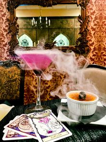 Step into the magic of The Cauldron, a French-inspired restaurant and bar where the experience begins with a hidden dining room revealed behind a secret bookcase. Inside, rich, comforting flavors take center stage—think deeply savory French onion soup and indulgent house-made bacon jam that's impossible to resist. The cocktails are just as spellbinding. The Boysenberry Cotton Candy Cocktail, known as The Knotty Kid, is a showstopper as fluffy cotton candy dissolves into a bright, boozy blend of vodka and lemon. For something truly enchanting, Roses by the Stairs pairs gin with a dramatic, poppable smoke bubble, filling each sip with aroma and flair. At The Cauldron, every dish and drink feels like a delicious discovery.